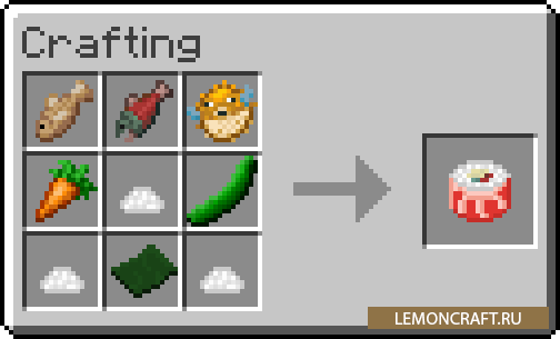 Мод на суши Exline's Sushi добавит в игру возможность приготовить такие знаменитые японские блюда, как суши и сашими! Для приготовления новых блюд мод добавляет такую культуру, как рис, а так же огурцы, используя которые вы сможете приготовить самые вкусные суши-роллы. Кроме этого, теперь кальмары будут давать сырое мясо, которое вы так же сможете использовать для приготовления новых блюд.
